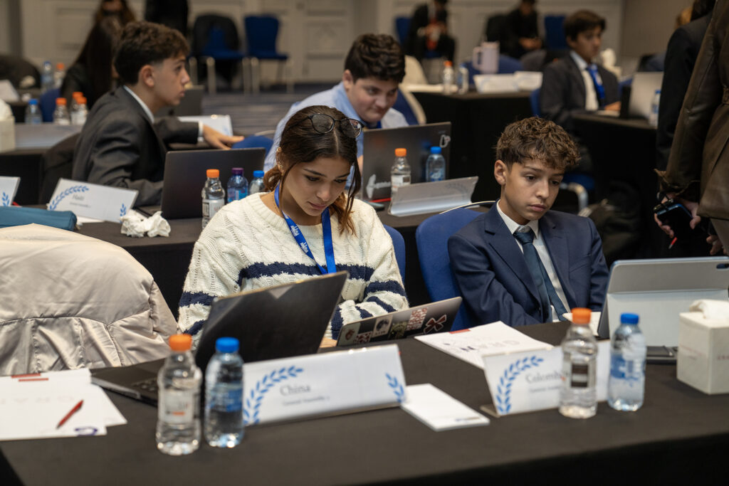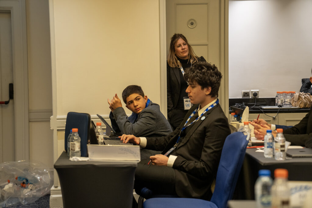 DIPLOMACY BEYOND THE PODIUM: One of the most beautiful parts of MUN is the human side—the friendships, the networks, the laughter in the hallways, the alliances over coffee breaks. Rayan Rabieh, Luna Ahmad, Farah J’oaneh, Yassine Masri, Samy Al Qawasmeh, Zaid Musleh, Leen Aladam, and Eleen Bazian made connections everywhere they went. Their kindness, warmth, and social diplomacy reminded everyone what MUN is truly about.