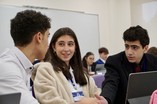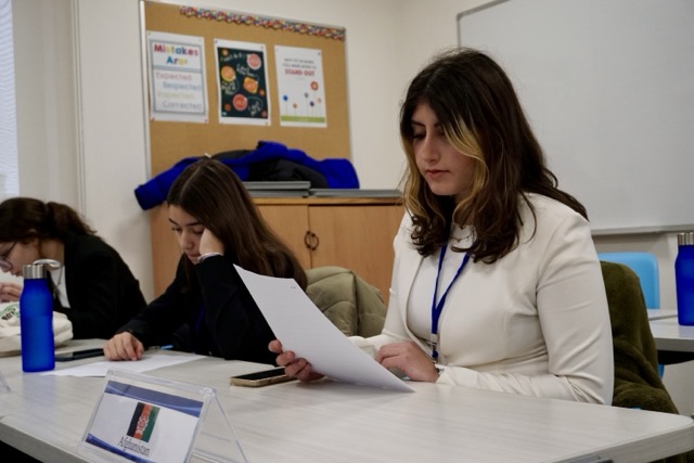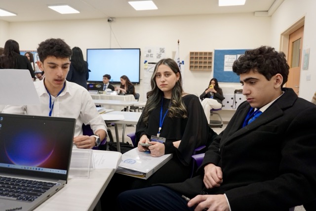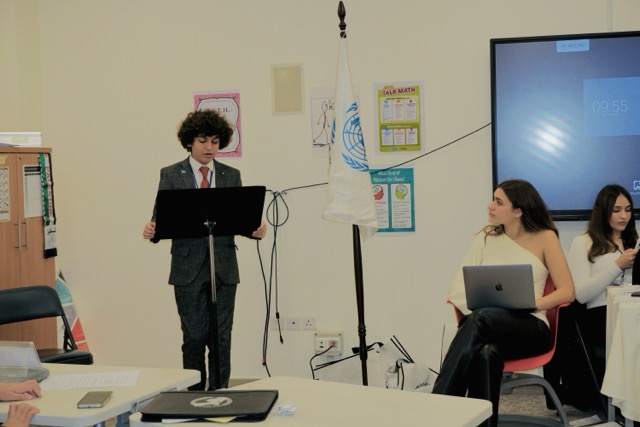 Our seasoned ambassador, Rakan Bani Ahmad joined forces with first-time delegate Lamaika Eseed––and together they excelled by successfully passing multiple resolutions. Lisa Shafaqoj’s collaborative prowess shone brightly as she co-authored the most comprehensive DC resolutions, which were met with little to no opposition, while Edward Raad’s commanding presence on stage was a masterclass in MUN diplomacy.
