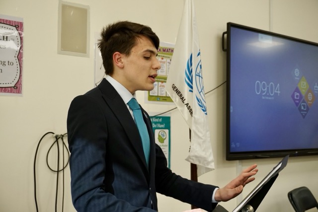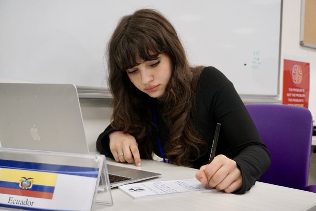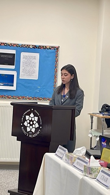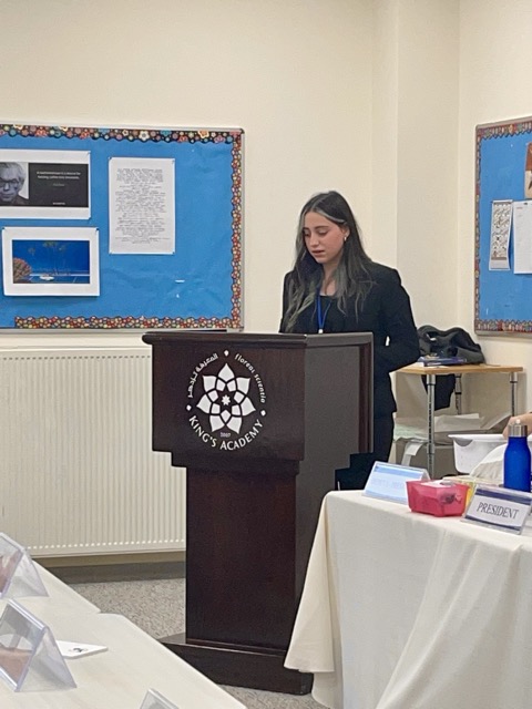 Tackling the impacts of Boko Haram in Nigeria and the plight of the Rohingya, our HRC delegates, including Hamad Darwish, Hashim Salman, and Usayd Masri, all passed significant resolutions. Kinana Darandary’s powerful speech on these topics brought a revered silence to the chamber.