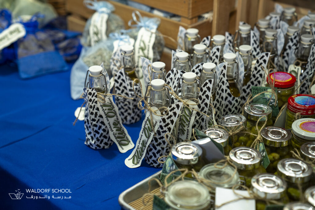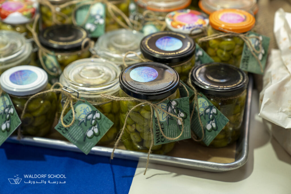 A special section honored the students who participated earlier in the season in collecting olives. Guided with dedication by Ms. Niveen Zureikat, our Lab Supervisor, students harvested olives and prepared jars that stood as symbols of tradition, patience, and connection to the land. The jars and olive oil bottles added an authentic, earthy note to the fair—grounding the event in heritage.